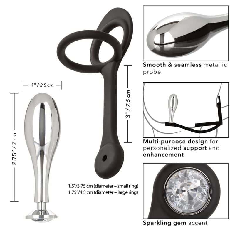 Décollez vers un univers de plaisir personnalisé avec le Star Fucker Teardrop Plug. Un double rehausseur en silicone extensible est associé à une sonde métallique élégante et sans couture pour un support polyvalent, une amélioration et même un jeu de température alléchant. Le double rehausseur en silicone souple a été créé pour augmenter lendurance, améliorer la sensibilité et offrir un soutien dérection supérieur. Soyez ludique en utilisant ensemble le double amplificateur et la sonde métallique, et n’oubliez pas qu’ils peuvent être démontés pour un nettoyage facile. La sonde flexible est fabriquée à partir d’un alliage d’aluminium lisse et sans soudure qui retient la chaleur ou le froid pour une expérience de jeu de température unique en son genre. Pendant que vous élargissez vos horizons avec l’élégant plug en forme de goutte, utilisez la base ornée de pierres précieuses étincelantes pour une stimulation torride, une insertion sans effort et un retrait en douceur. La vue est encore meilleure de derrière grâce à la base de pierres précieuses étincelantes.