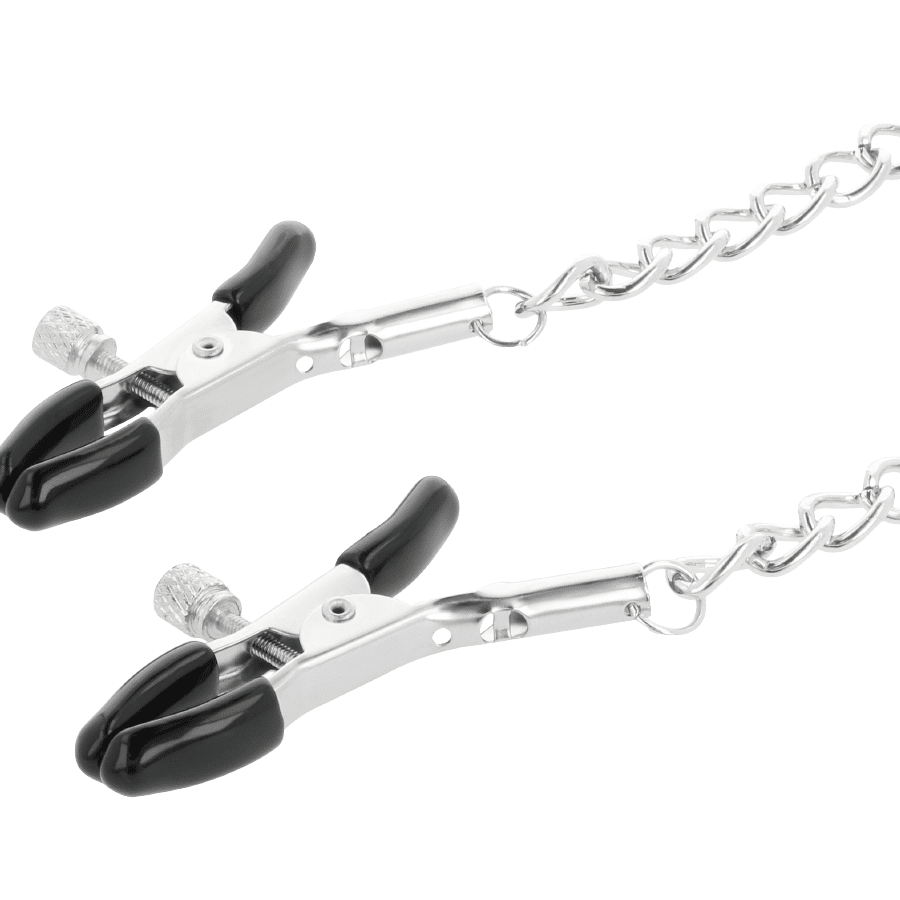 Collier glamour et audacieux, attaché par une chaîne argentée à des pinces à tétons. Un jeu de bondage passionnant spécialement pour eux. Les pinces et le collier sont réglables en taille et en tension. Il est parfait pour la stimulation des mamelons et de nombreuses autres zones sensibles.