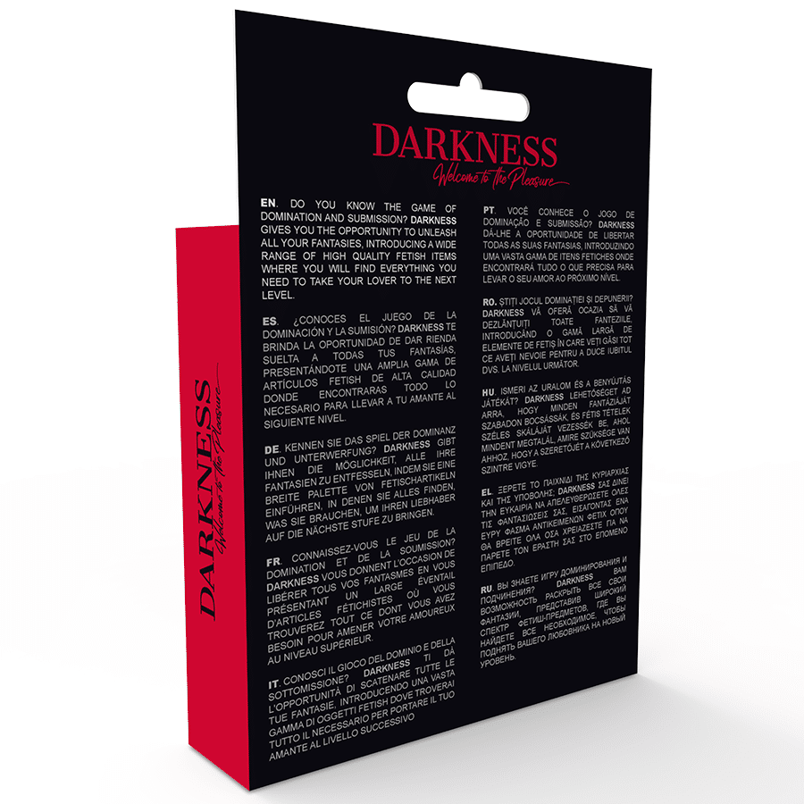 Connaissez-vous le jeu de domination et de soumission ? Darkness vous donne l’opportunité de libérer tous vos fantasmes, en vous présentant une large gamme d’articles fétichistes de haute qualité où vous trouverez tout ce dont vous avez besoin pour faire passer votre amoureux au niveau supérieur.