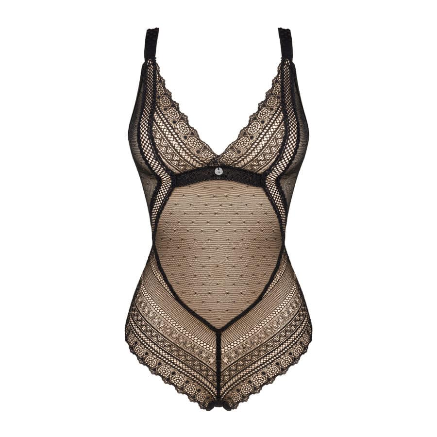 Ce teddy de la collection Estiqua séduit par sa délicatesse et impressionne par une coupe exceptionnellement féminine ! La matière légèrement translucide stimule l’imagination et dynamisera à coup sûr l’ambiance des moments partagés. Enflammez vos sens et mettez en valeur tous les atouts de votre silhouette, et nous vous garantissons qu’une soirée torride se terminera de manière extrêmement agréable !