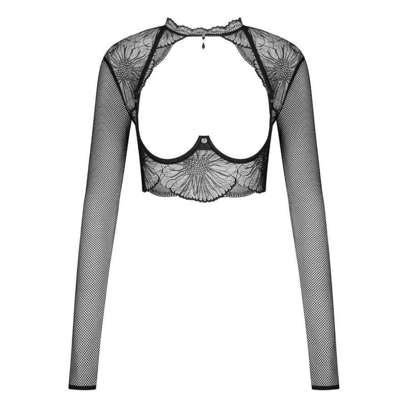 Vous ne pourriez pas jeter un simple coup d’œil à ce haut ! Manches longues, découpe dans le dos et bonnets ouverts ! C’est le genre de lingerie qui vous attirera comme un papillon de nuit vers la flamme, si vous n’avez pas peur de jouer avec le feu ! Le haut associé à un soutien-gorge et une culotte de la même collection est un mélange chaud, sexy et explosif ! Vous laisserez-vous tenter ?