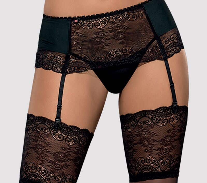 Porte-jarretelles au beau design appelé Miamor en noir avec rubans pour les adapter à vos bas préférés (non inclus) fabriqués et conçus par la prestigieuse marque Obsessive