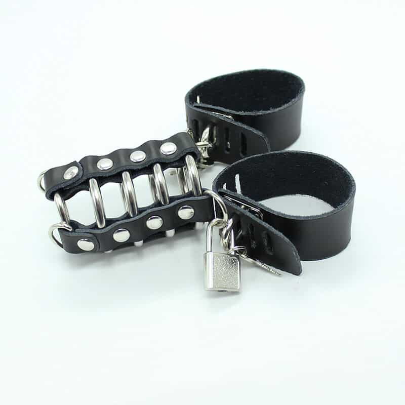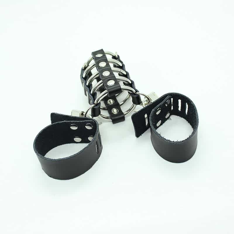 OHMAMA FETISH – CAGE PÉNIS AVEC ANNEAUX MÉTALLIQUES ET SANGLE EN CUIR