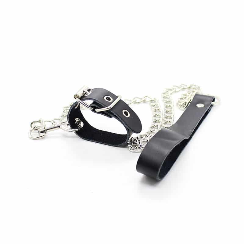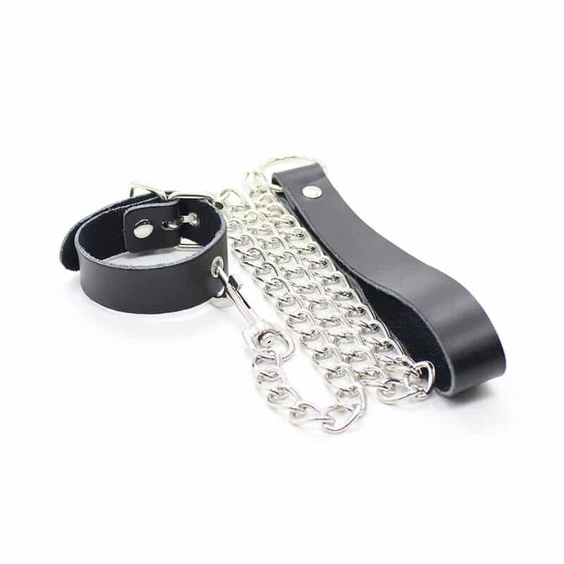 OHMAMA FETISH – COLLIER PÉNIS ET BRACELET EN CUIR AVEC CHAÎNE MÉTALLIQUE