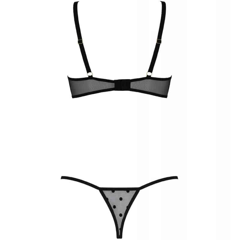 L’ensemble Marina se compose de deux parties : un string et un soutien-gorge. Le soutien-gorge est un modèle à bonnets semi-ouverts, avec des bretelles entourant la poitrine. Effet? Seins tentants et sexuellement exposés. La combinaison de tulle à pois est une combinaison fantastique d’innocence et de super sexy.