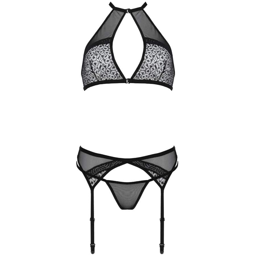 - Composition de l’ensemble : Soutien-gorge, porte-jarretelles et string.