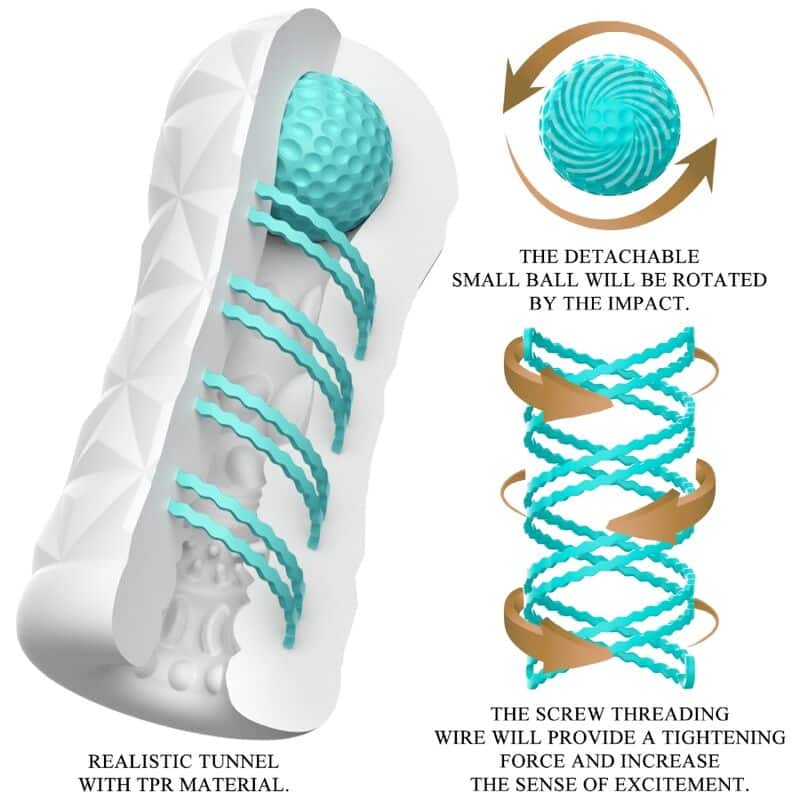 Petit outil pour un plaisir de masturbation gigantesque ! Ce masturbateur transparent et réutilisable possède une spirale rotative et une boule de stimulation sur le côté, la spirale rotative fait tourner le masturbateur lors de la pénétration et la boule sur le dessus peut stimuler le bon endroit et vous procurer une nouvelle sensation. La gaine possède à l’intérieur une texture stimulante et excitante qui masse le pénis de manière intense et dynamique lors du travail manuel. Vous pouvez utiliser cet élégant masturbateur doux pour la peau encore et encore. Très simple d’utilisation et un pur plaisir !