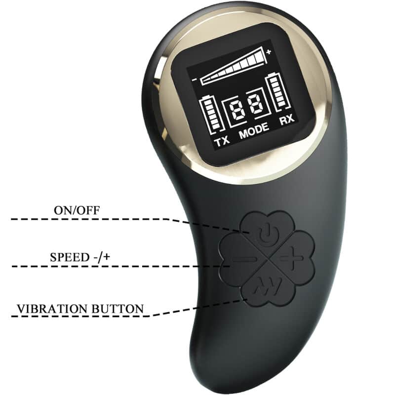 Rechargeable, silencieux, vous pourrez contrôler ses 10 modes de vibrations intenses manuellement grâce à son unique bouton ou à distance grâce à sa télécommande incluse.
