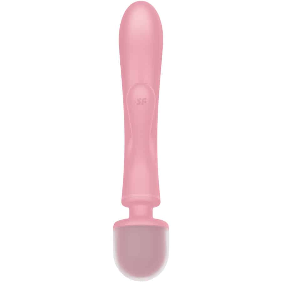 Trois moteurs alimentent les deux fonctions du Satisfyer Triple Lover en silicone avec beaucoup de puissance. Le vibromasseur peut être utilisé comme un lapin pour une stimulation synchronisée du point G et du clitoris ou comme un masseur pour des massages complets du corps.