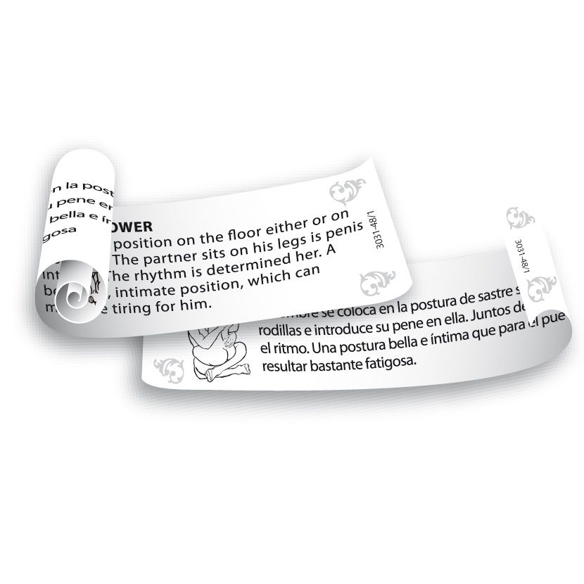 Une sensation pour vous et votre partenaire ! À laide de la pince à épiler, vous prélevez un parchemin dans le cœur. Quelle position érotique allez-vous essayer ? Sera-ce la balade de la déesse, le bateau de l’amour ou l’adoration ? Acceptez le défi et vivez ensemble le plaisir et lintimité.